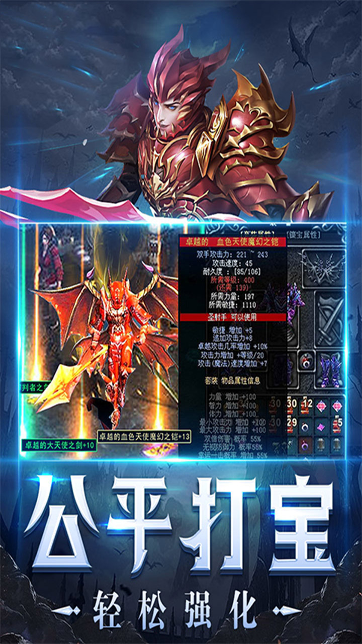光明使者(奇迹战神)是一款多职业融合了冒险与复古情怀的魔幻奇迹手游。在这里,你将穿越至一个被神秘魔法笼罩的大陆,探索未知的古老遗迹,追寻传说中的奇迹。游戏画面精美绝伦,复古风格中蕴含着现代技术的光影特效,带你重温经典,又超越想象。多样职业自由选择,独特技能组合策略无限,让你在战斗中体验极致快感。与众多玩家并肩作战,共同挑战BOSS,争夺稀有装备,书写属于你的魔幻传奇。不论是单打独斗还是团队协作,都能满足你对奇幻冒险的所有幻想